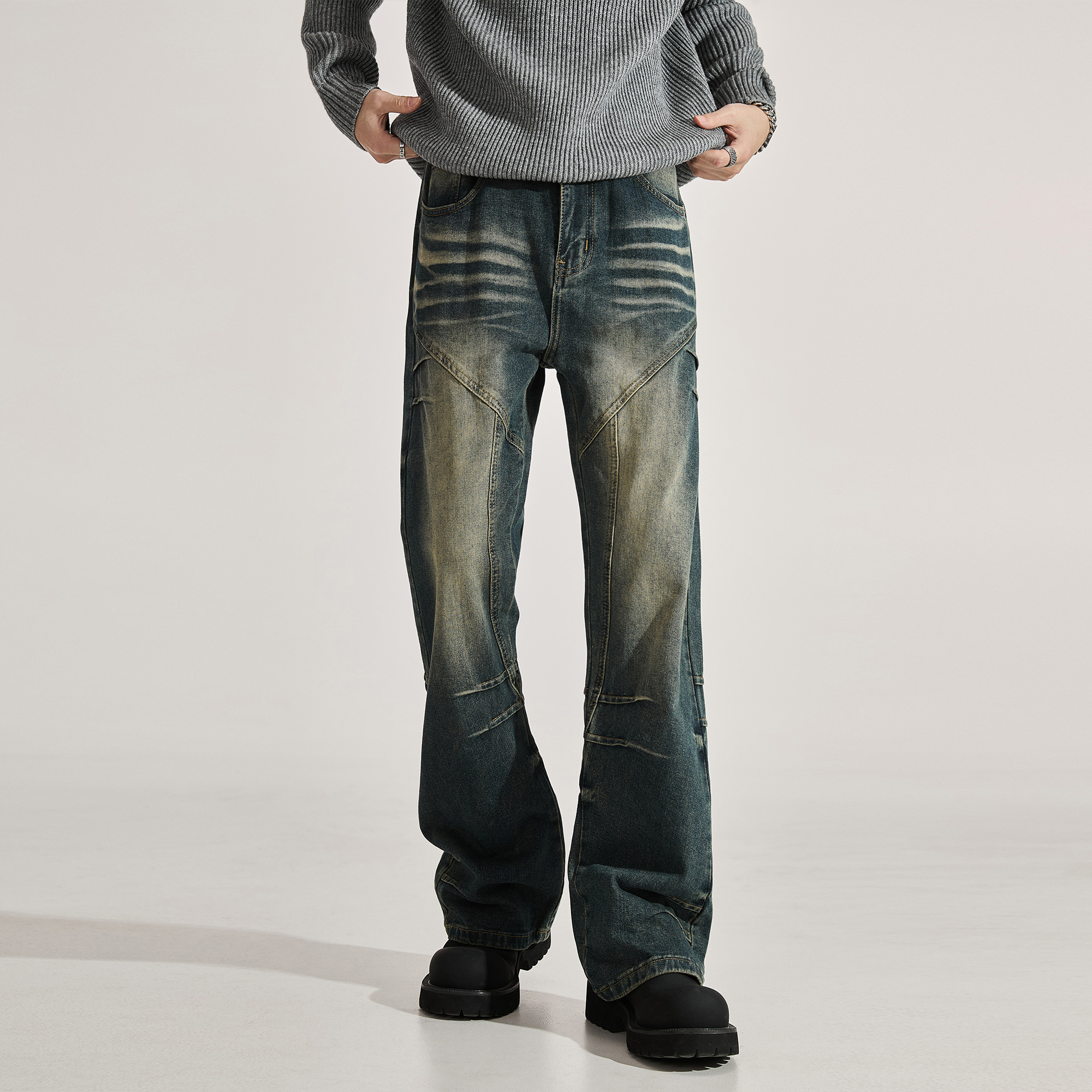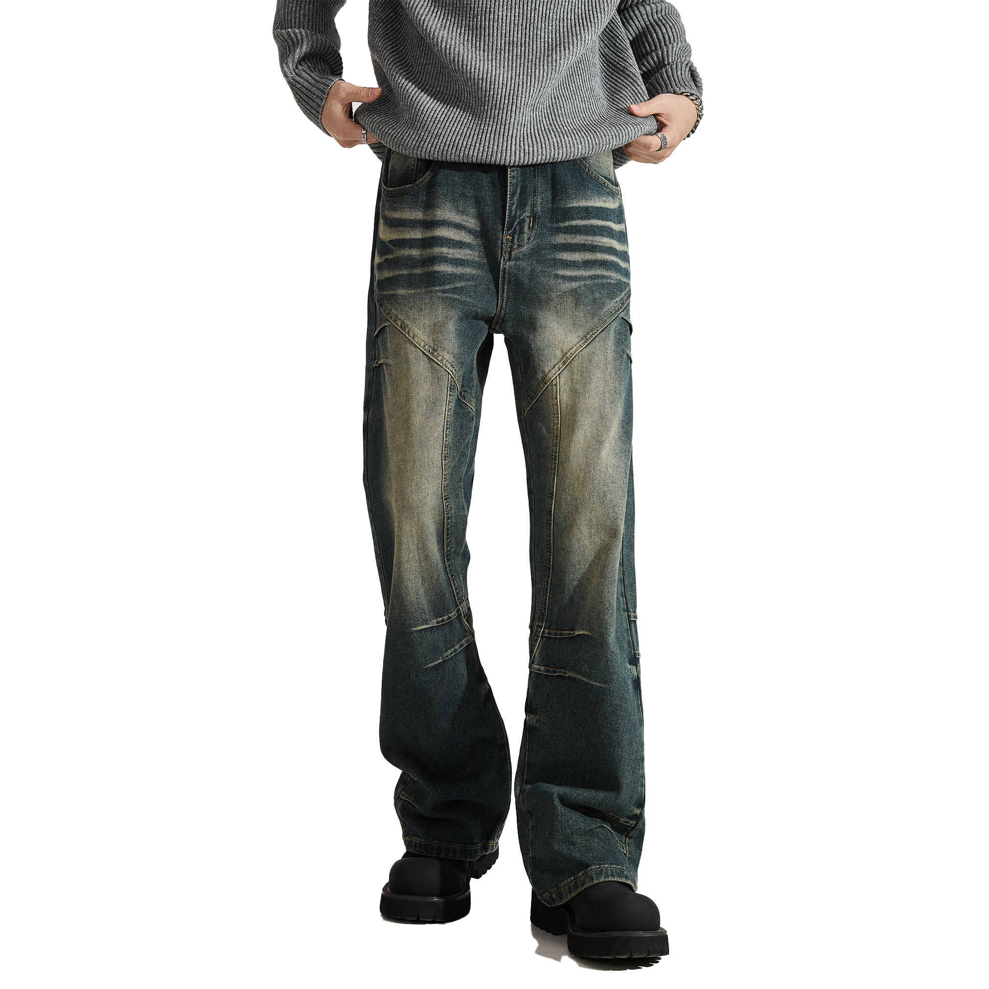 男士 夏季 高街裤 窄版 子 显腿长美式 微喇牛仔裤 直筒喇叭裤 ALLIN 修身