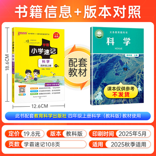 25秋小学学霸速记科学三年级上下册四五六年级考前速记小学生重难点复习资料同步练习训练册pass绿卡图书课堂笔记知识点 教科版
