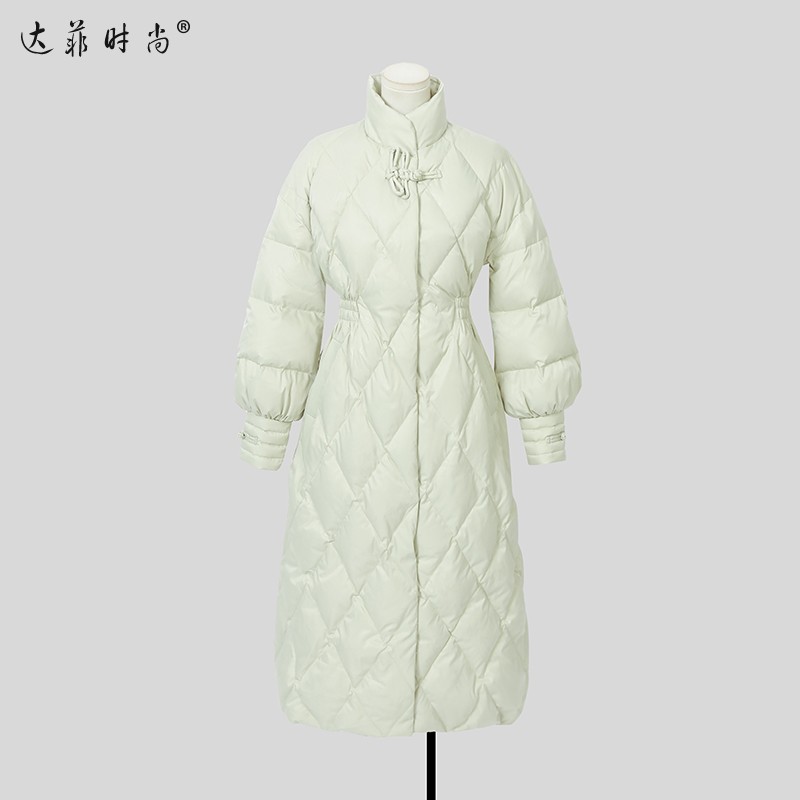 收腰长款 20255冬季 国风提花立领灯笼袖 新中式 过膝A摆羽绒服 新款