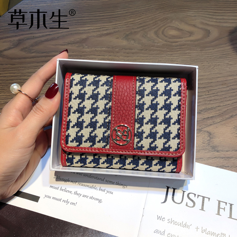 稻草人钱包女士新款 牛皮简约钱夹零钱包女生卡包 真皮小众钱夹女式