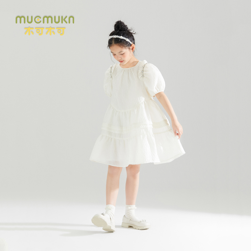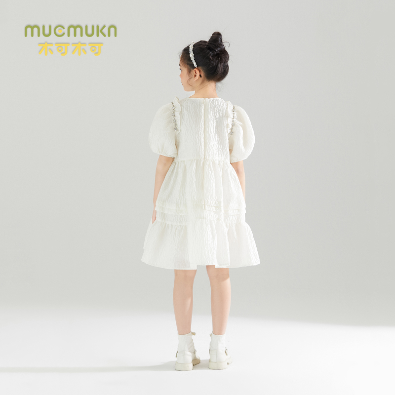 女童白色泡泡袖 公主裙夏甜美可爱仙女连衣裙中大儿童亮钻女孩裙子