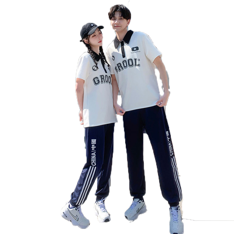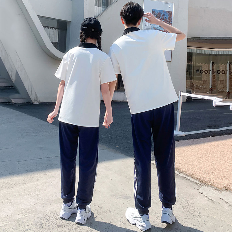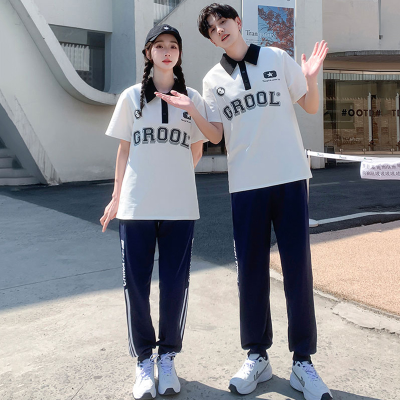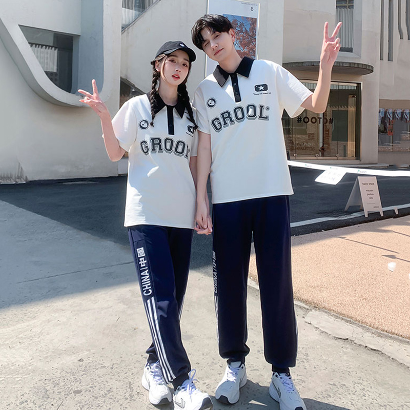 ins潮流两件套情侣套装 夏季 韩版 运动服2025新款 T恤女 学生班服短袖