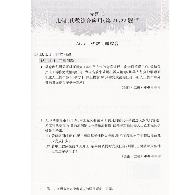 题湖灌顶中考数学真题模拟题分类精编 社中考重难点突破压轴题 初中数学基础篇提高篇专题训练上海一模二模真题上海教育出版