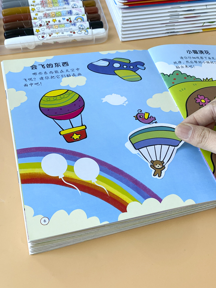 6岁找不同粘贴纸早教绘本智力开发启蒙认知书 儿童益智专注力贴纸训练书全脑逻辑思维游戏幼儿园书籍宝宝贴贴画反复贴全套0