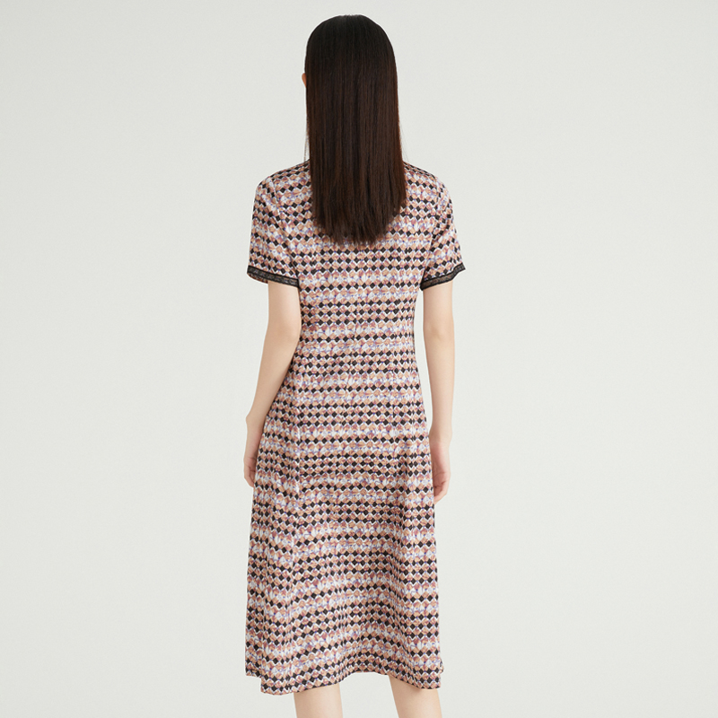 张婧仪同款 圆领连衣裙拼接假两件A1FAF2922 朝夕太平鸟三醋酸法式