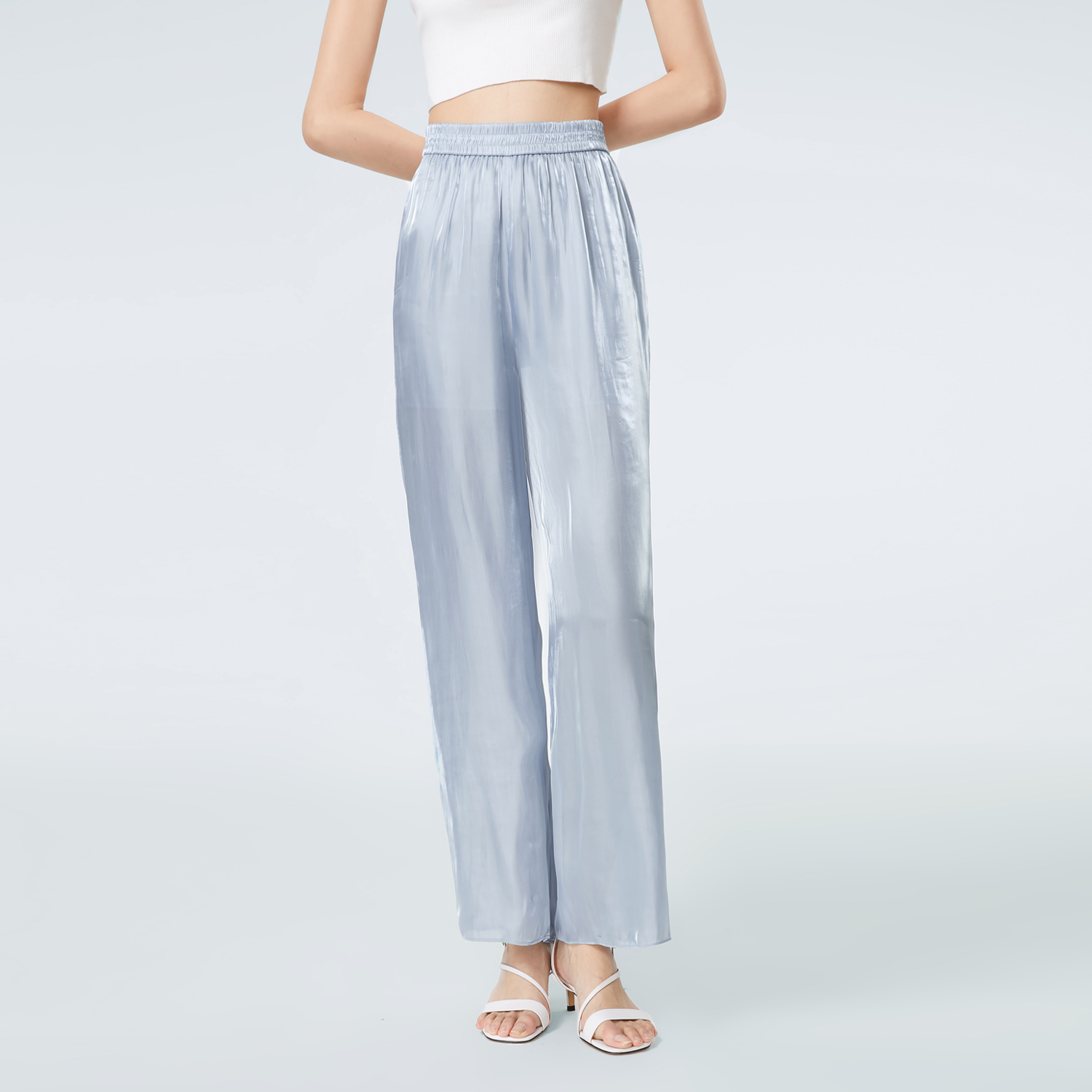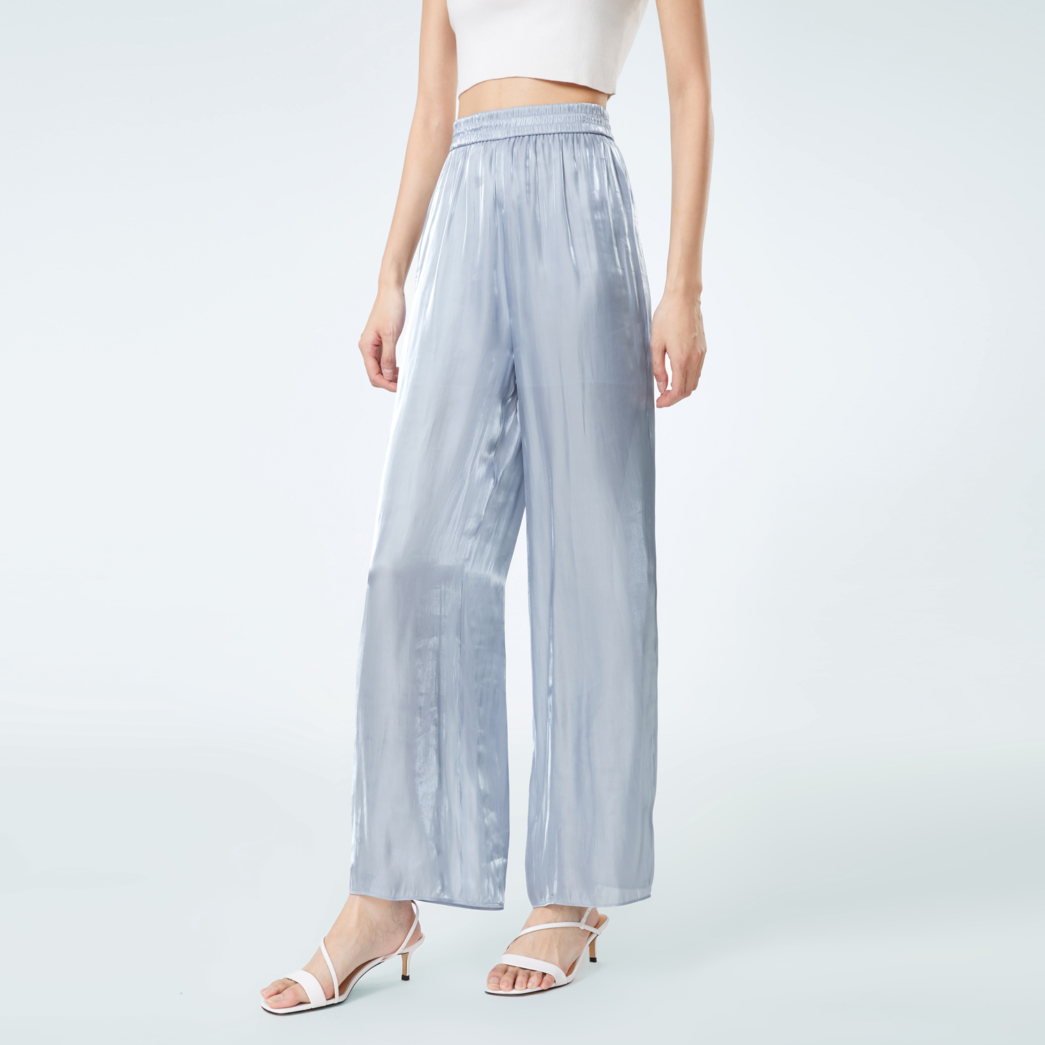 休闲直筒裤 舒适轻盈光泽感松紧腰套装 女装 OVV春夏热卖