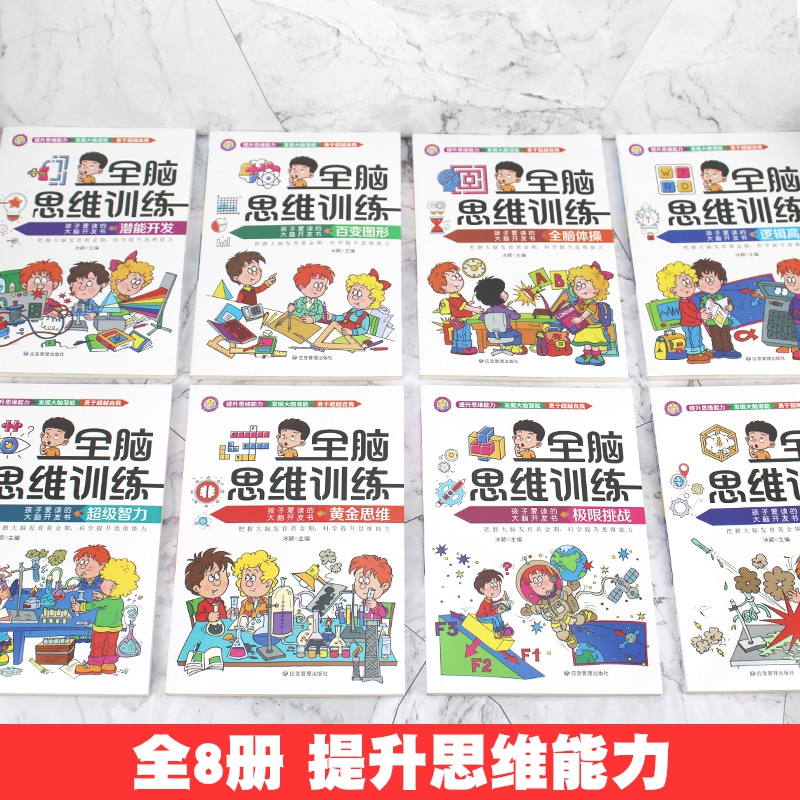 大脑潜能开发书儿童益智数学思维头脑风暴练习册 12岁儿童潜能开发科学提升孩子思维能力专注力训练孩子爱读 全脑思维训练全8册