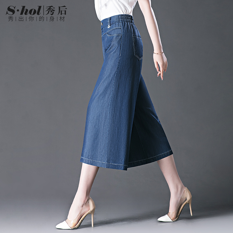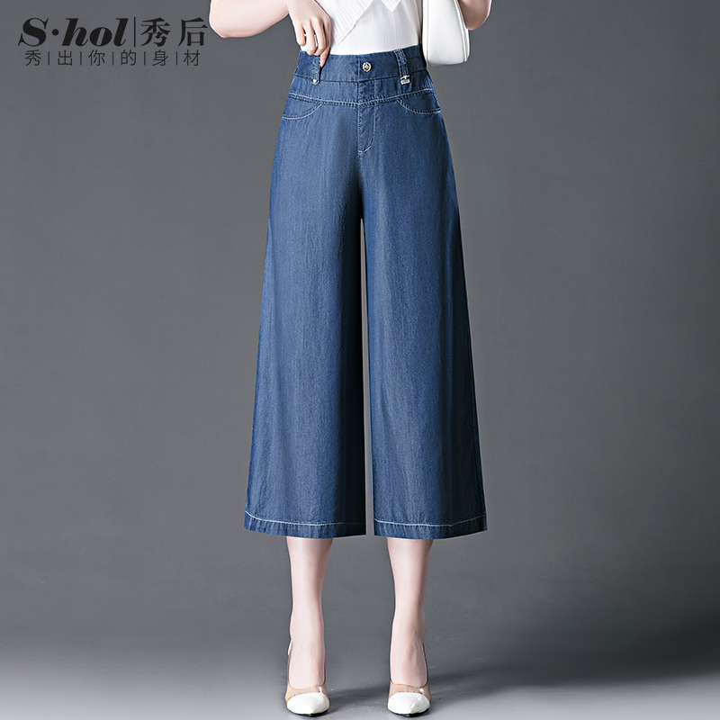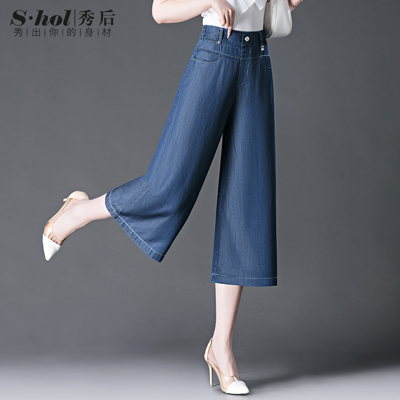 牛仔女裤 松紧高腰透气亲肤薄款 清凉天丝八分阔腿时尚 秀后2024夏季