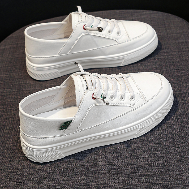 流行爆单休闲板鞋 新款 女百搭两穿一脚蹬春秋平厚底2025夏季 小白鞋