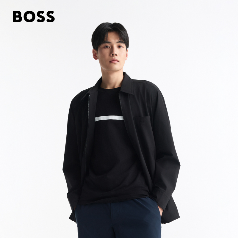 弹力面料 型衬衫 BOSS博斯 徽标饰片与尖领设计宽松版 外套 男士