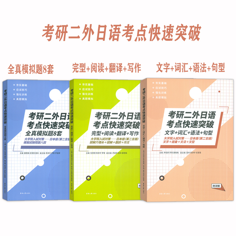 作文 词汇 完型 阅读 句型 文字 语法 3本套装 考研二外日语考点快速突破 翻译 全真模拟题8套