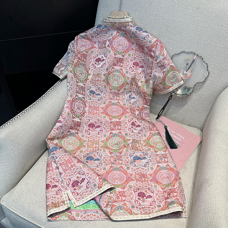 女装 收腰新中式 旗袍连衣裙夏设计感开叉复古气质时尚 中国风改良版