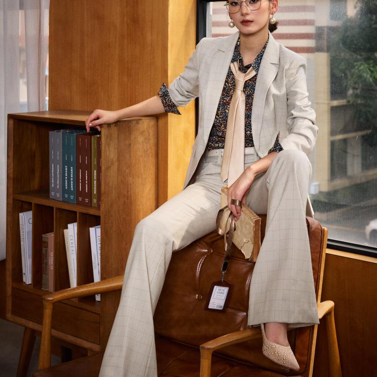 女裤 时尚 套装 气质高级感长袖 通勤 两件套职业装 璐丝百丽2025春秋款