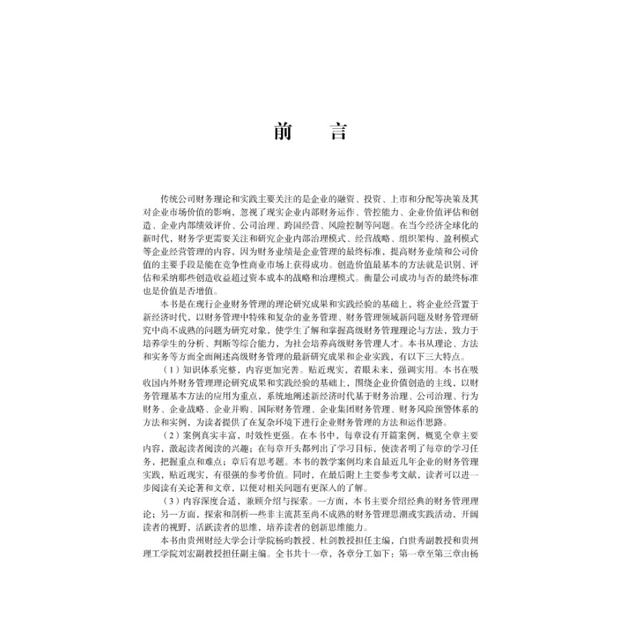 管理与创造 企业业绩评价 公司治理 财务管理导论 企业并购 行为财务理论 企业价值评估 财务战略 高级财务管理 财务治理理论