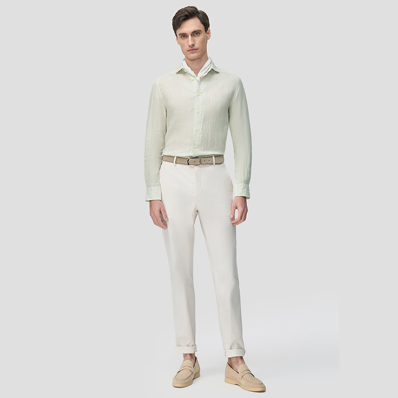 长袖 衬衫 男士 新款 利郎官方 商务休闲条纹2025冬季 衬衣男 磨毛