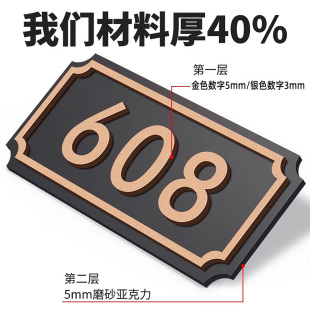 门牌号码 高档入户住宅轻奢包厢酒店宾馆房间房号包间办公室标识牌自粘数字门贴 牌家用亚克力定制创意宿舍个性