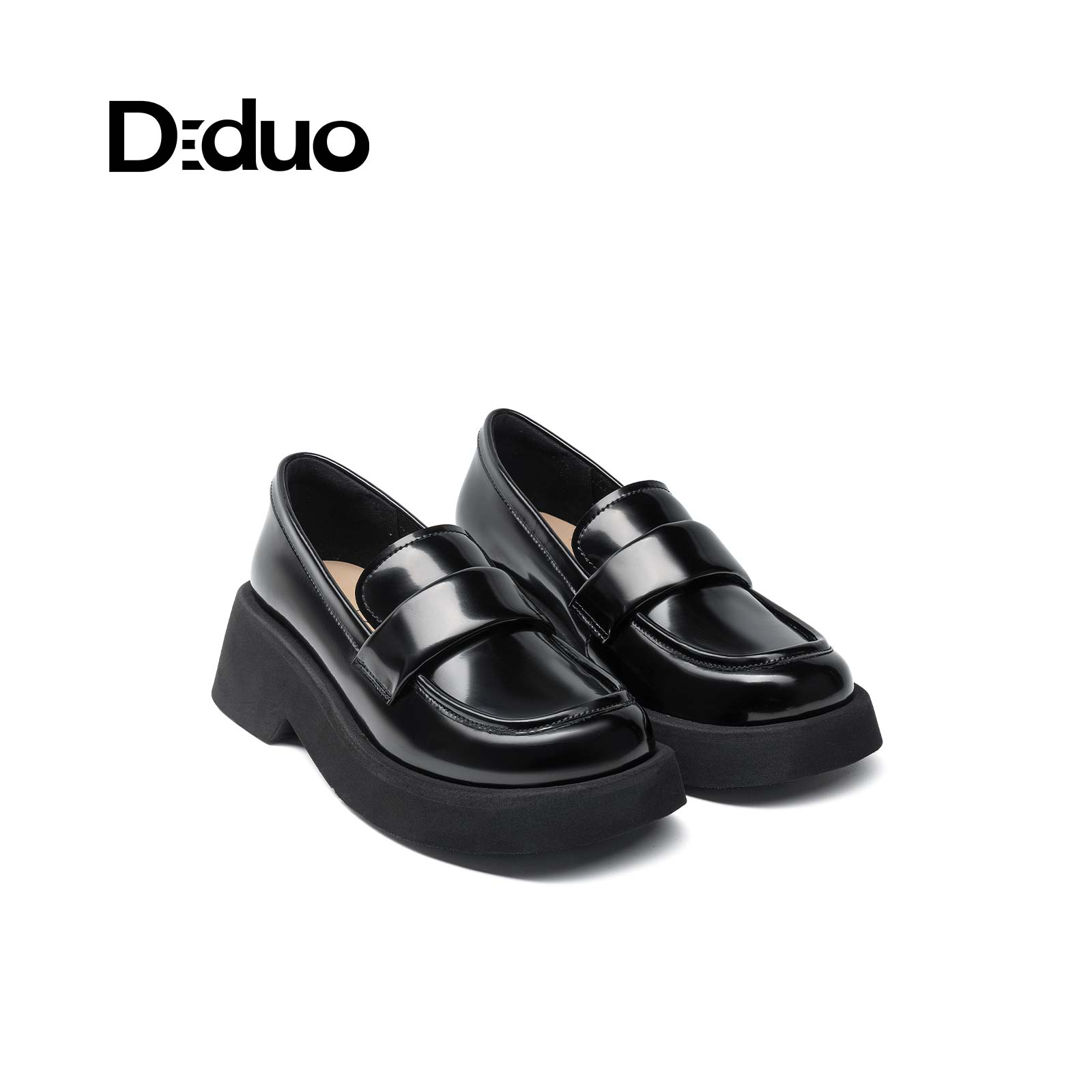 迪朵2025秋季 小皮鞋 新款 女真皮单鞋 子 懒人一脚蹬黑色乐福鞋 Diduo