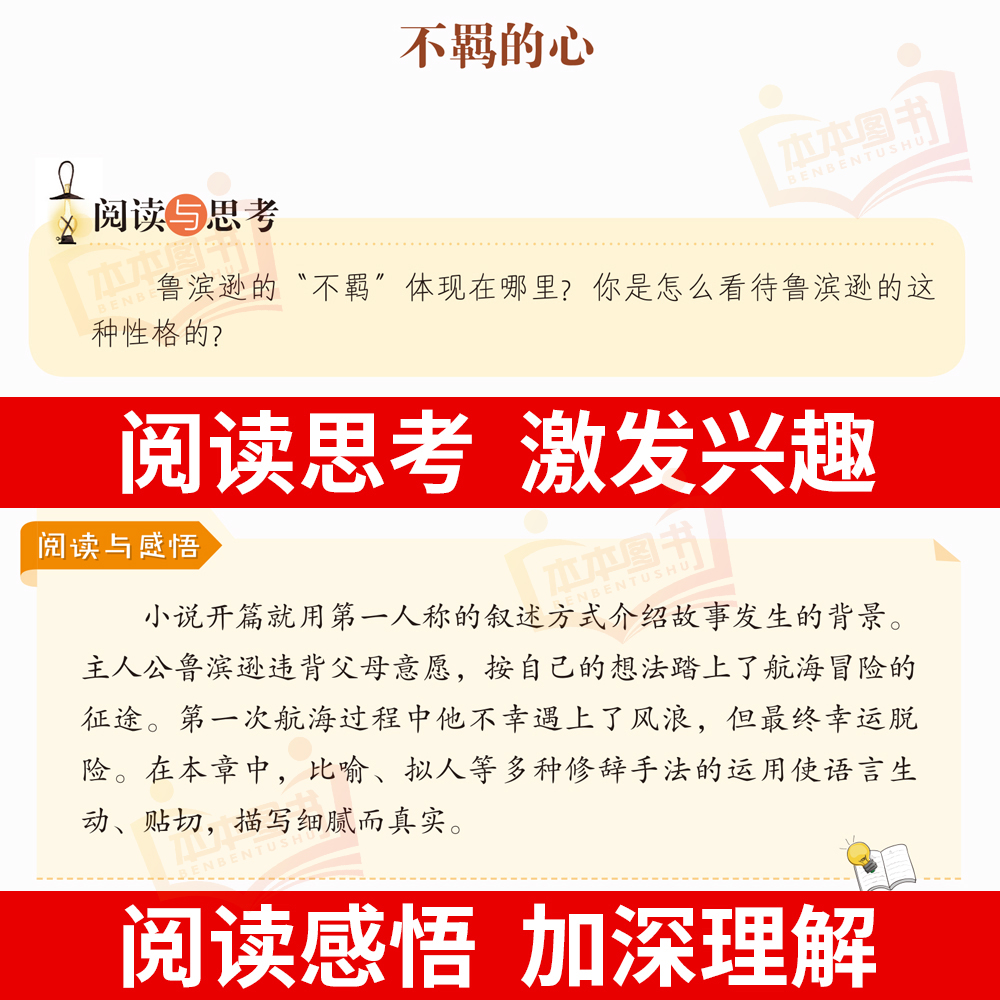 彩图正版 汤姆索亚历险记鲁宾逊鲁滨孙彩插图文版 原著完整版 导读经典 三四五六年级上下册小学生必读课外书藉老师推荐 鲁滨逊漂流记