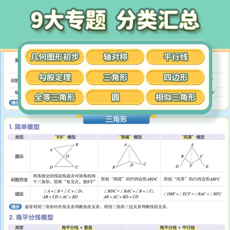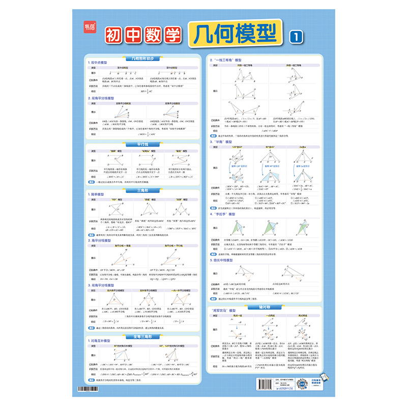 初中数学几何模型挂图几何图形辅助线七八九年级数学分类知识点总结解题技巧归纳挂图墙贴 易蓓