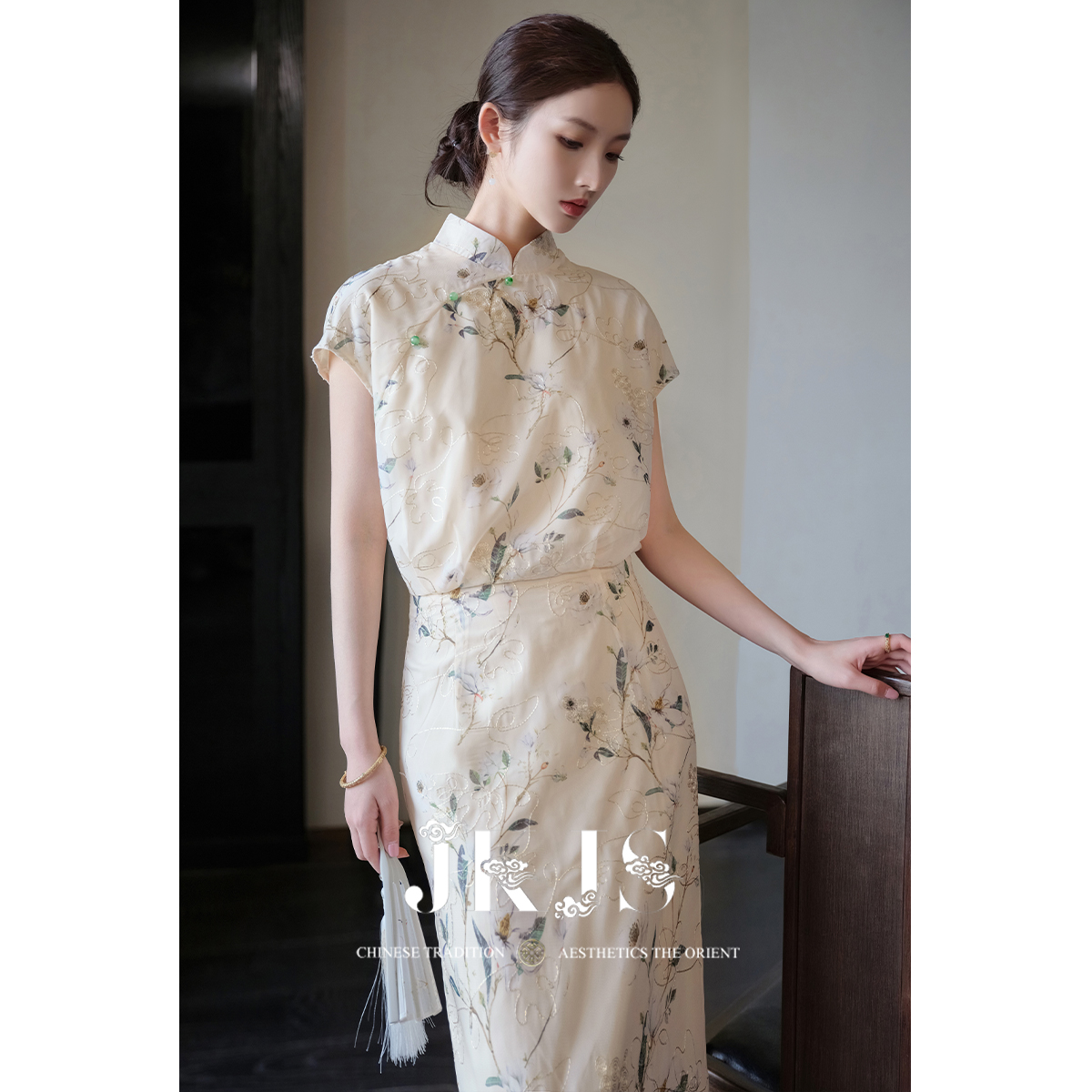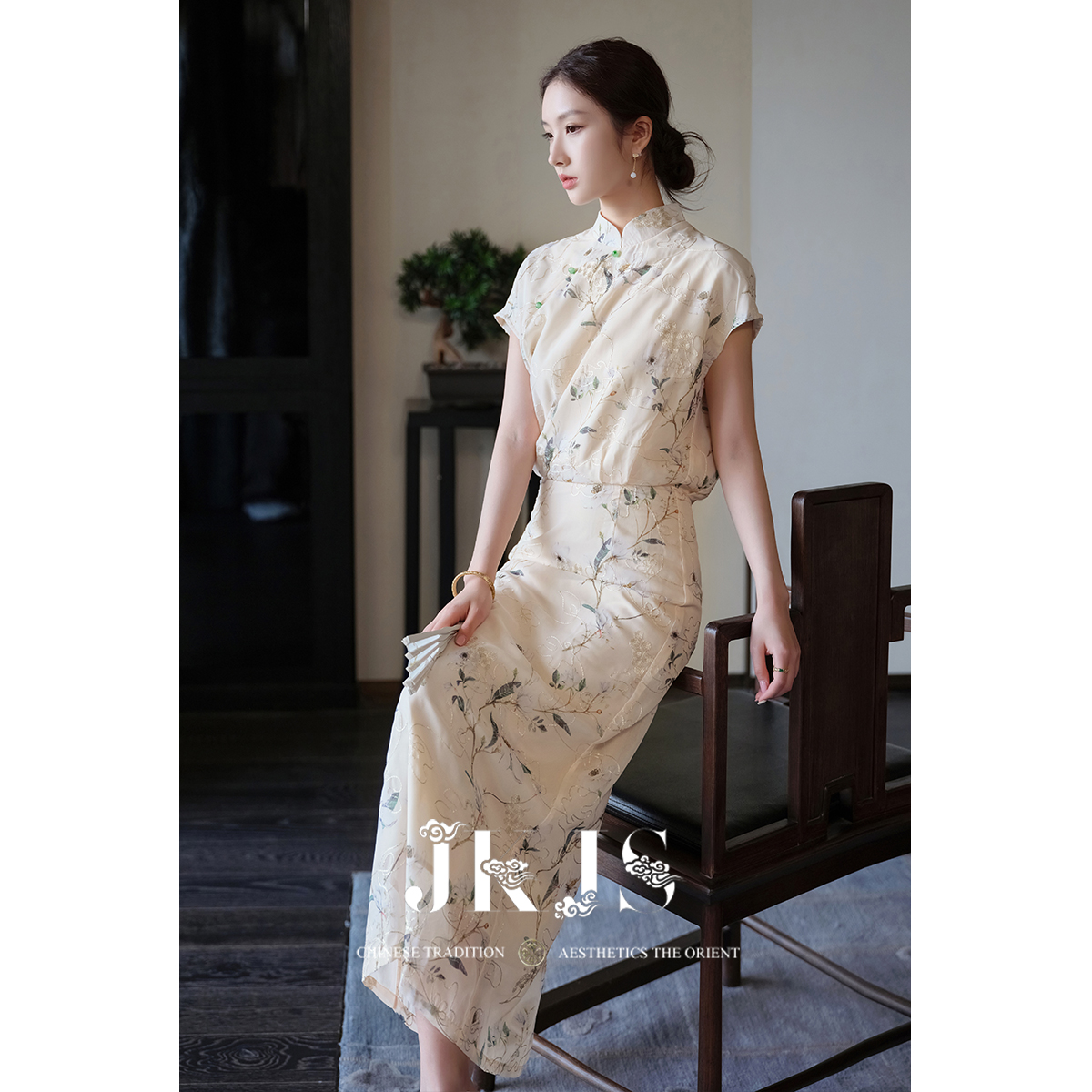 端庄国风旗袍裙 优雅粉色波点立领连衣裙女25年夏季 XZY 微胖新中式