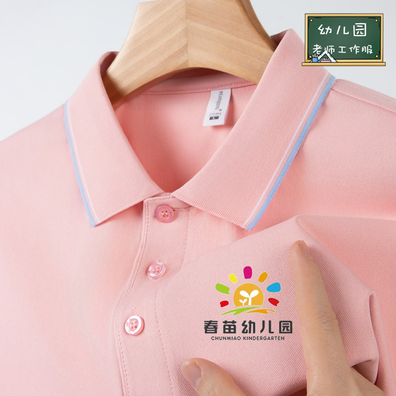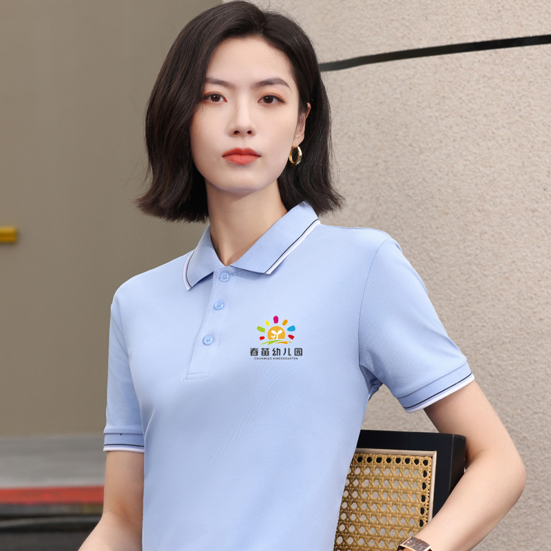 印logo 女定制浅紫色幼儿园老师教育培训工作服t恤短袖 短袖 polo衫