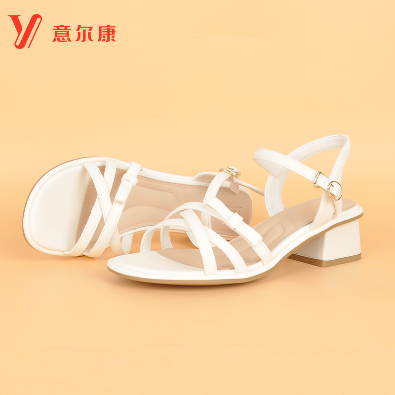 粗跟百搭配裙子气质女鞋 意尔康凉鞋 交叉绑带显腿细时尚 新款 女夏季