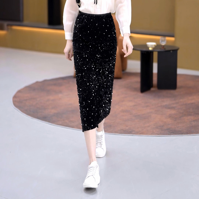 珂莱蒂尔2025秋新简约易搭丝绒半身裙子女中长裙