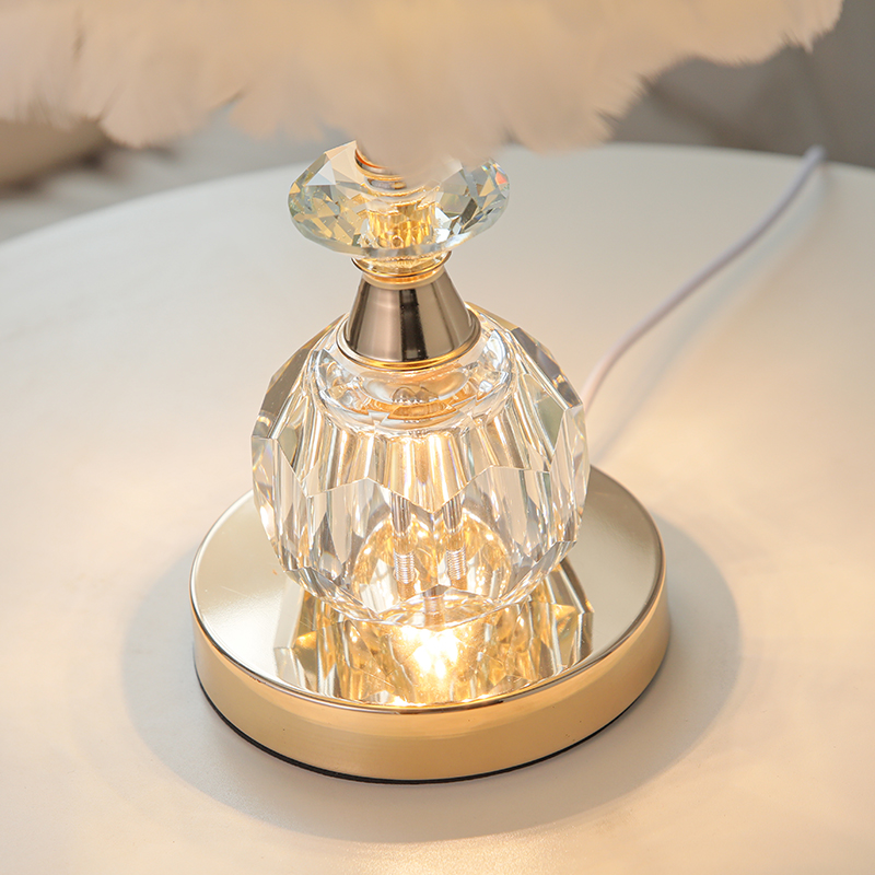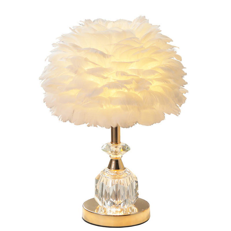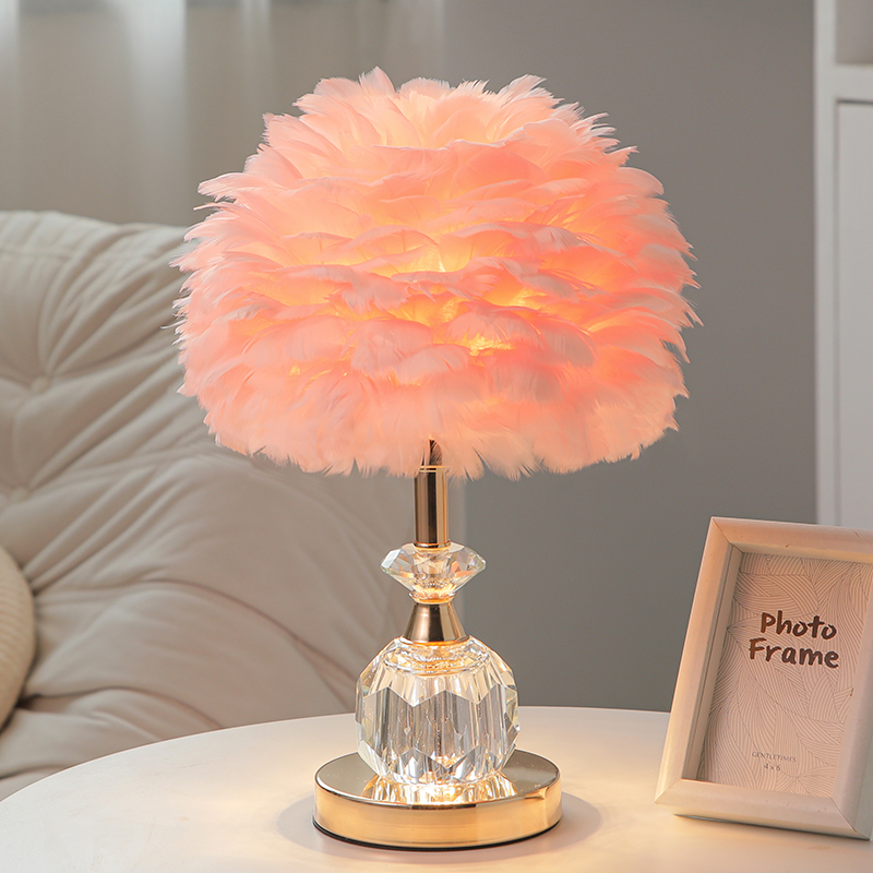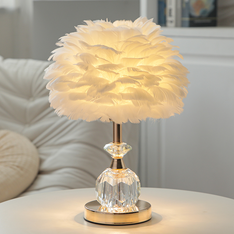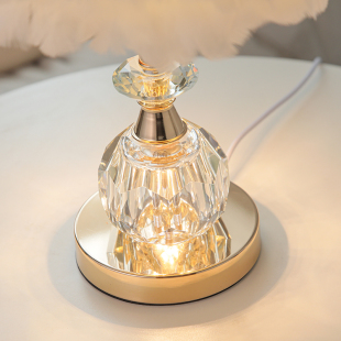 羽毛台灯家用卧室简约现代灯温馨浪漫婚房水晶装 饰结婚床头小夜灯