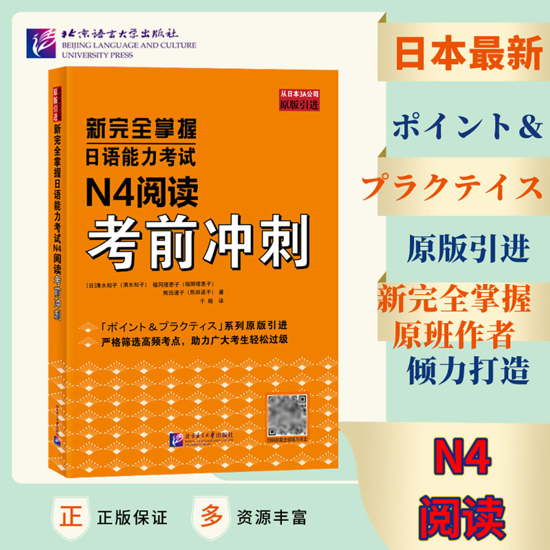 N4听力 考前冲刺 新日本语能力测试四级 新完全掌握日语能力考试 JLPT备考用书 中日双语解析 N4阅读 社 2册 北京语言大学出版