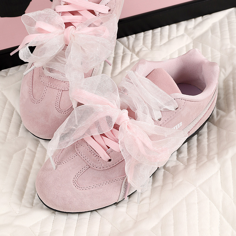 配饰蝴蝶结diy珍珠鞋 蕾丝鞋 芭蕾风白色丝带德训鞋 女款 扣 带赛车鞋