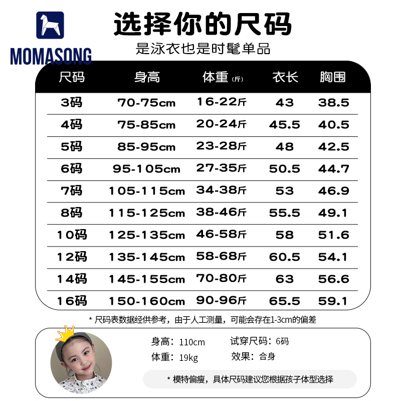 连体防晒中小童女孩温泉泳装 Momasong儿童游泳衣女童2025新款 长袖