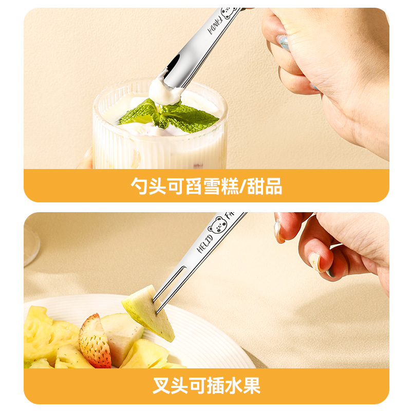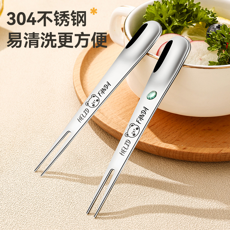 食品级316不锈钢水果叉子儿童便携甜品叉勺水果签蛋糕点心小叉子