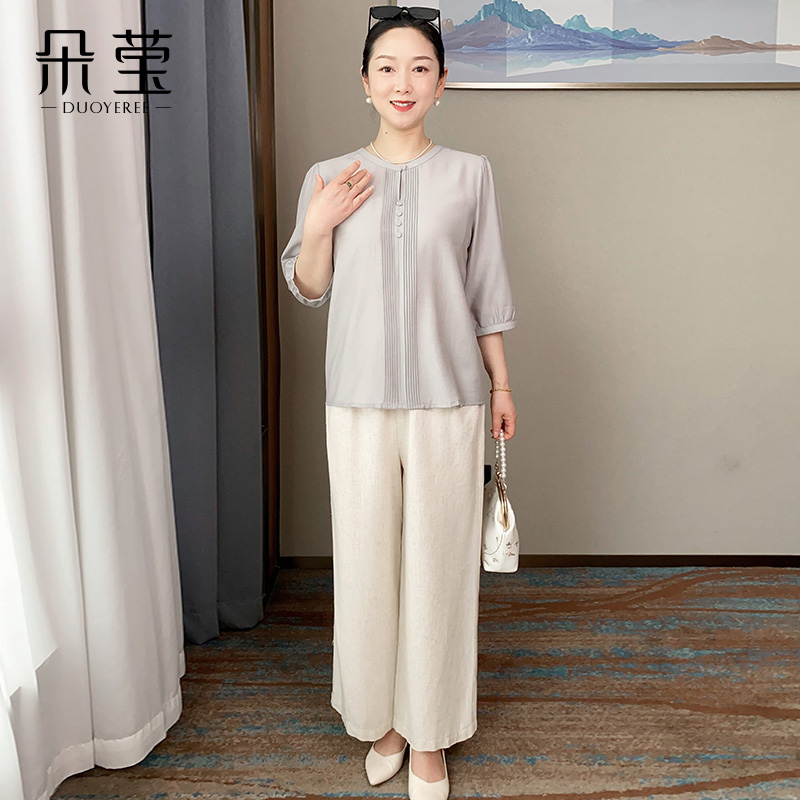 中老年女气质时尚 2025新款 两件套 洋气T恤小衫 朵莹中年妈妈春夏装