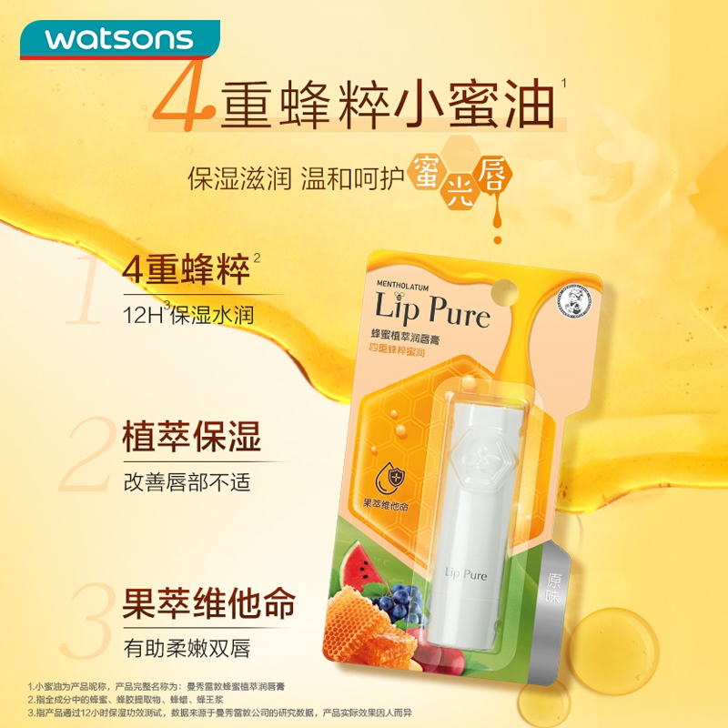 屈臣氏曼秀雷敦天然植物润唇膏无香料滋润保湿 补水口红打底两只装