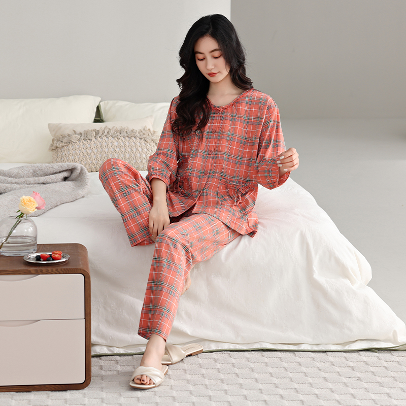长袖 简约舒适家居服套装 长裤 夏季 可外穿 2025新款 纯棉睡衣女春秋季