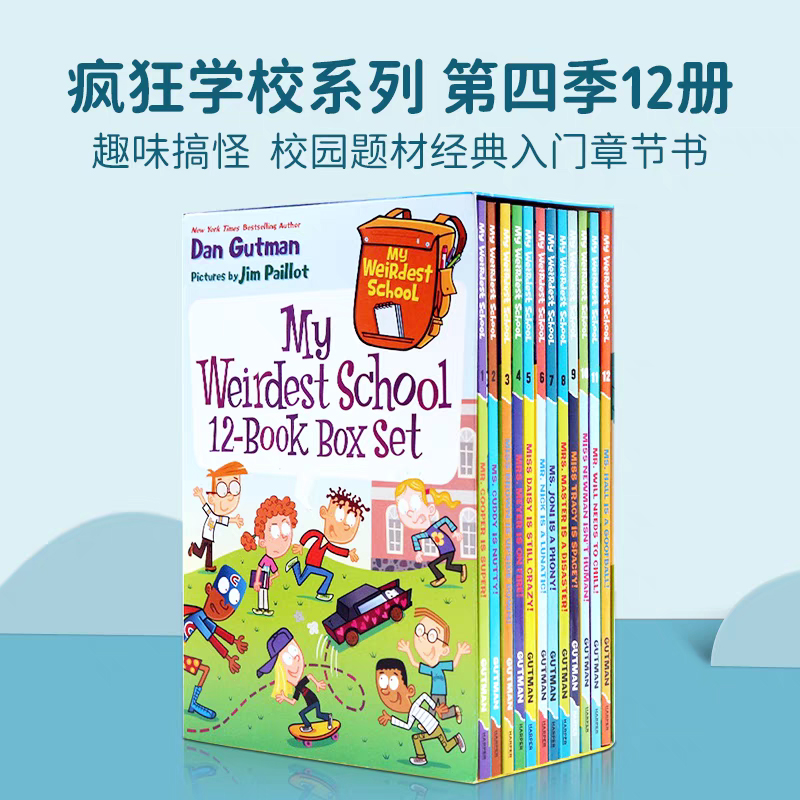 school 英文原版 初级章节桥梁漫画书搞怪校园故事 儿童章节小说 读物 weirder 美国小学推荐 疯狂学校第四季 12册盒装