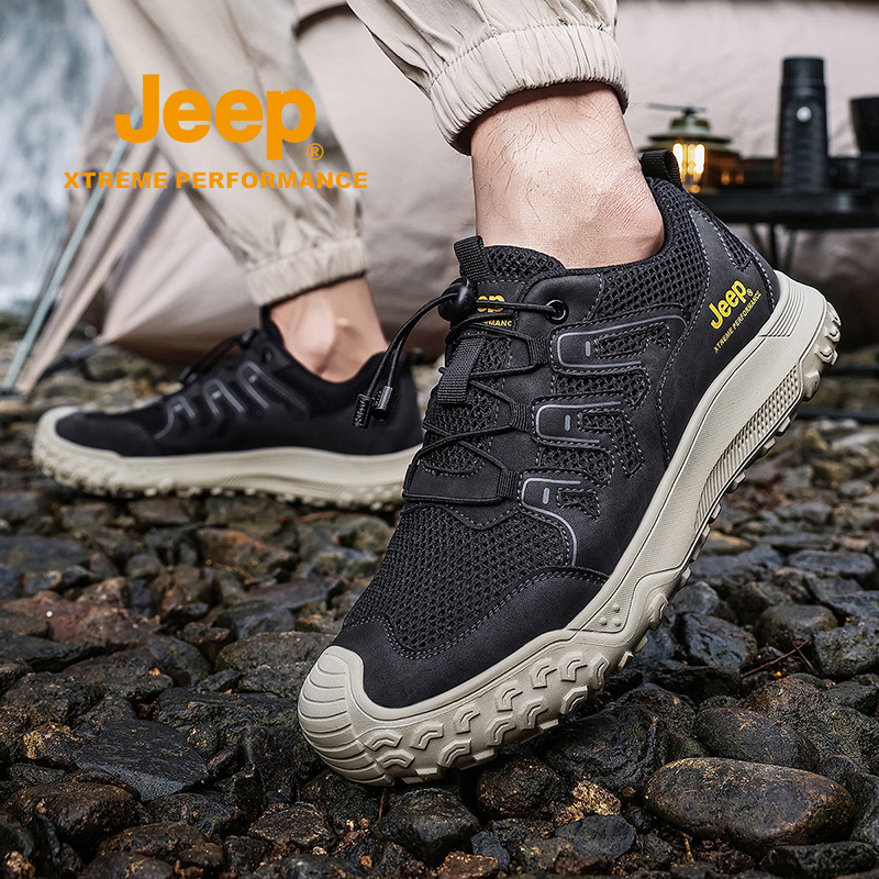 户外防滑轻便软底爸爸旅游鞋 Jeep男鞋 男士 透气网面休闲运动鞋 夏季