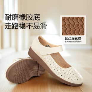 中老年舒适不累脚秋奶奶皮鞋 足力健老人鞋 官方旗舰店女平底妈妈鞋
