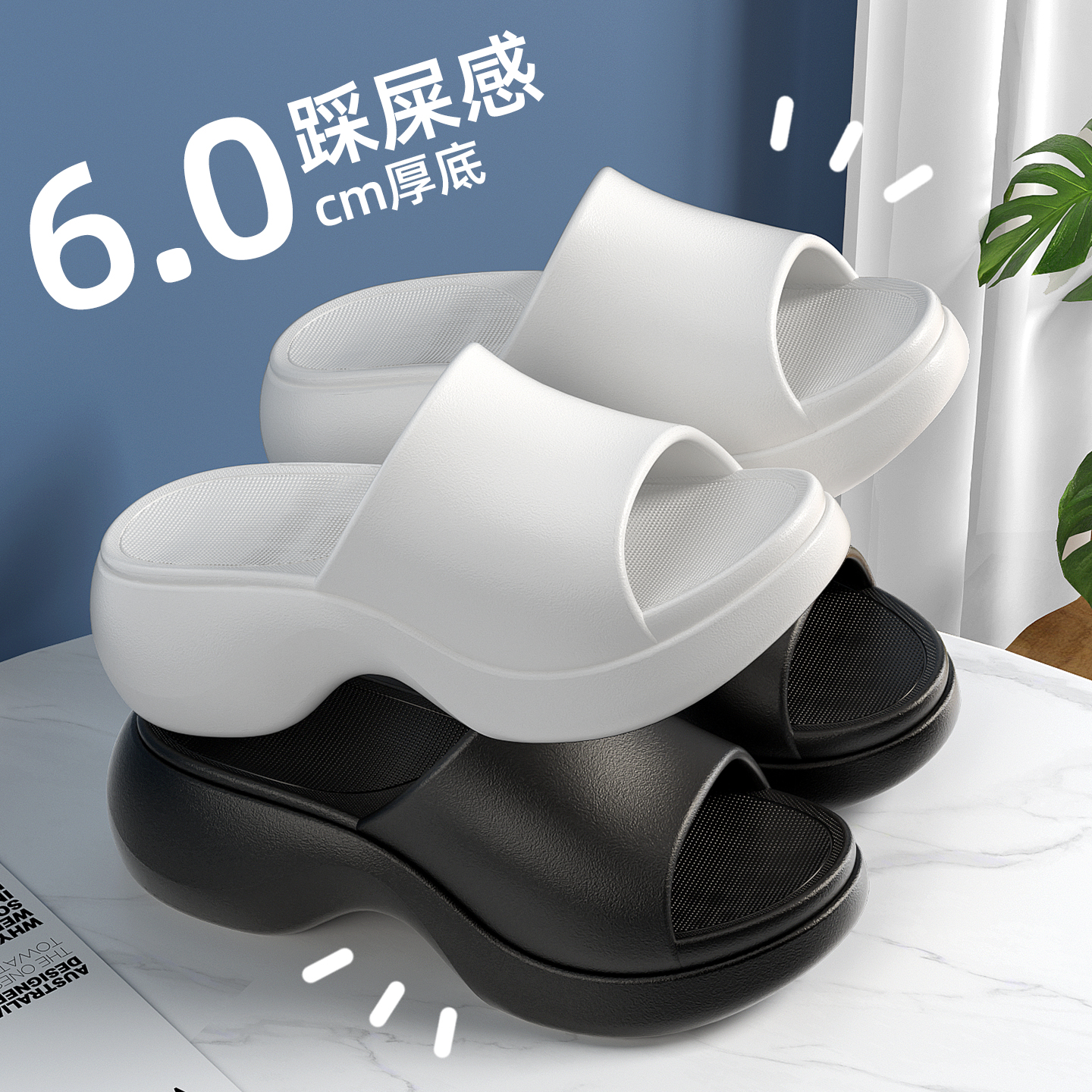 一字凉拖 厚底增高防滑软底轻便高跟户外穿沙滩鞋 路拉迪拖鞋 女夏季