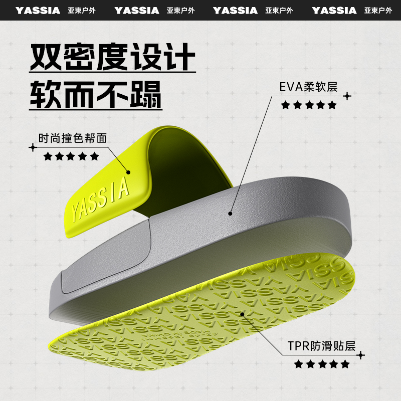 女 悦步轻便一字拖厚底EVA防滑足弓支撑外穿拖鞋 亚束2025新款 男士