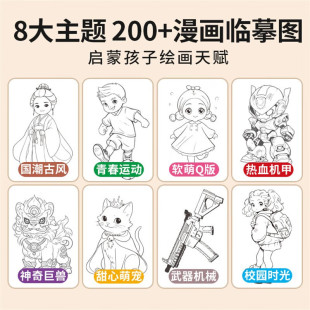 漫画入门手绘描摹本全套共8册 女孩图画古风专用纸基础自学教程绘画素描临摹练习画册书基础自学教 动漫人物描绘线描儿童画画本q版
