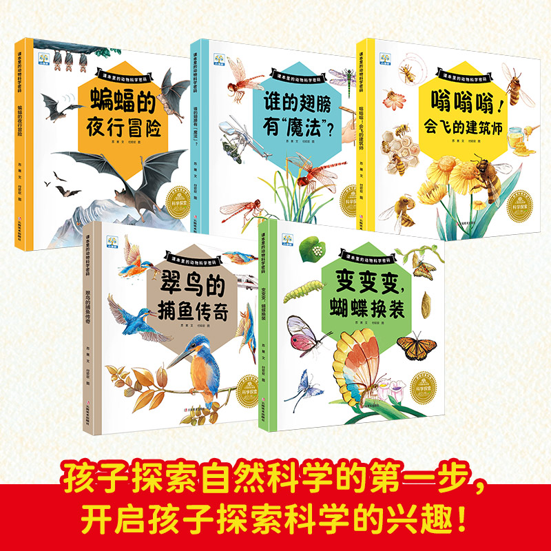6岁幼儿园宝宝老师推荐 科普百科儿童绘本3 硬皮蜜蜂蜻蜓蝴蝶鸟故事早教认知启蒙图画书魔法阅读有趣开学 硬壳动物科学密码 全5册精装