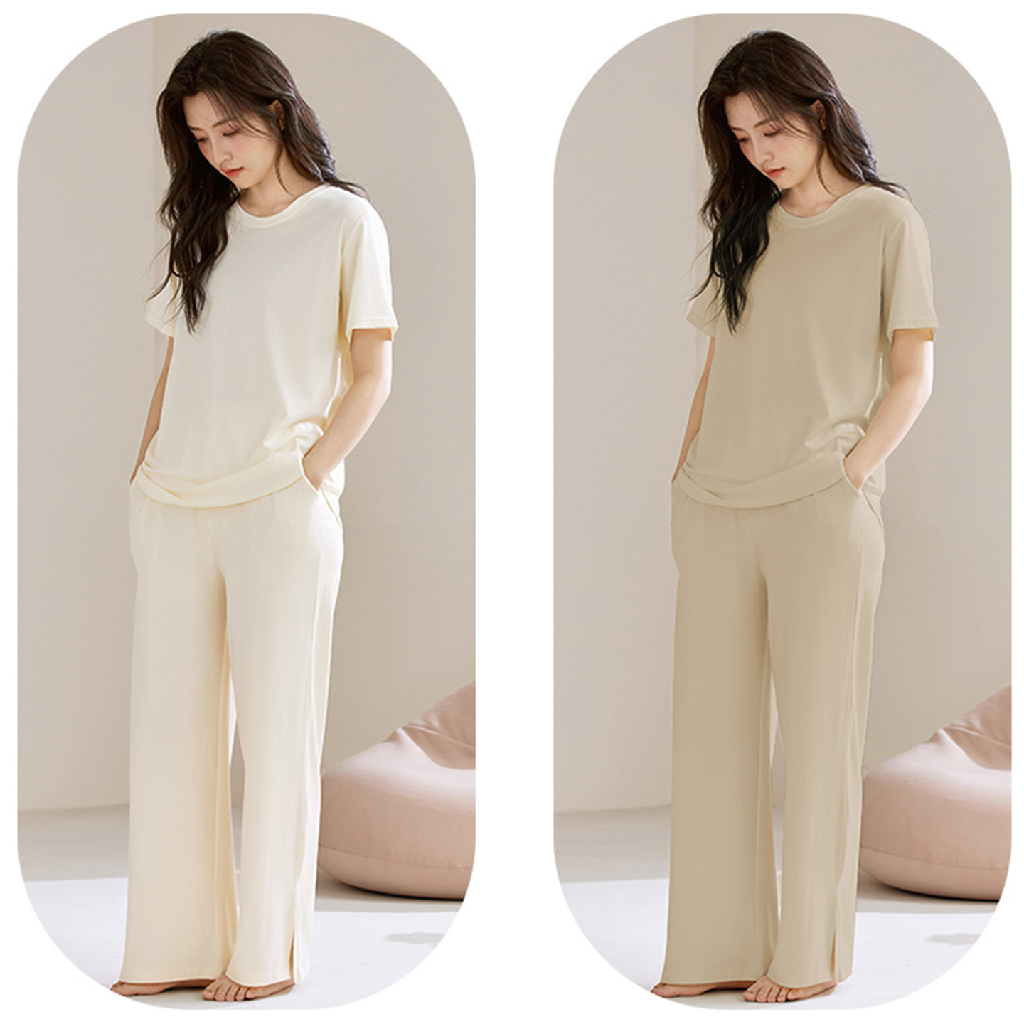 冰感家居服套装 莫代尔冰丝睡衣女夏天短袖 高级感夏季 2025新款 长裤