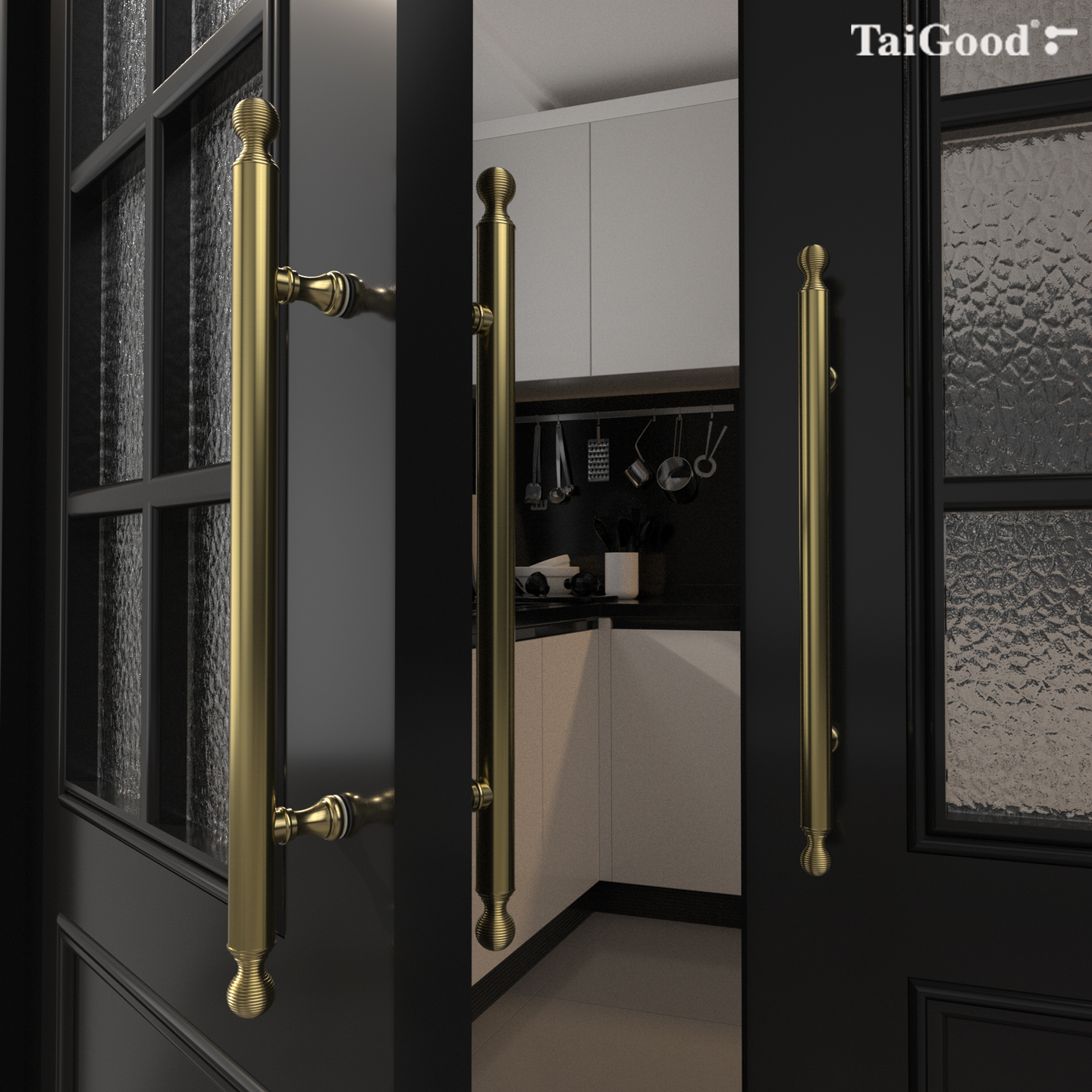 黄铜新美式 门把手定制 复古双开大门拉手浴室钢化玻璃门仿古铜明装