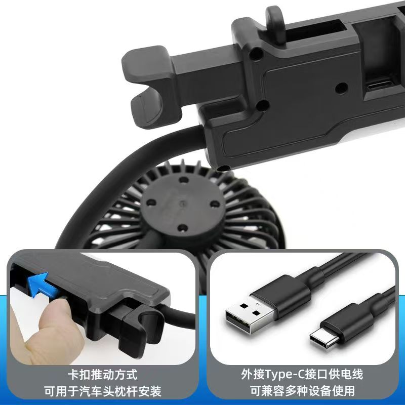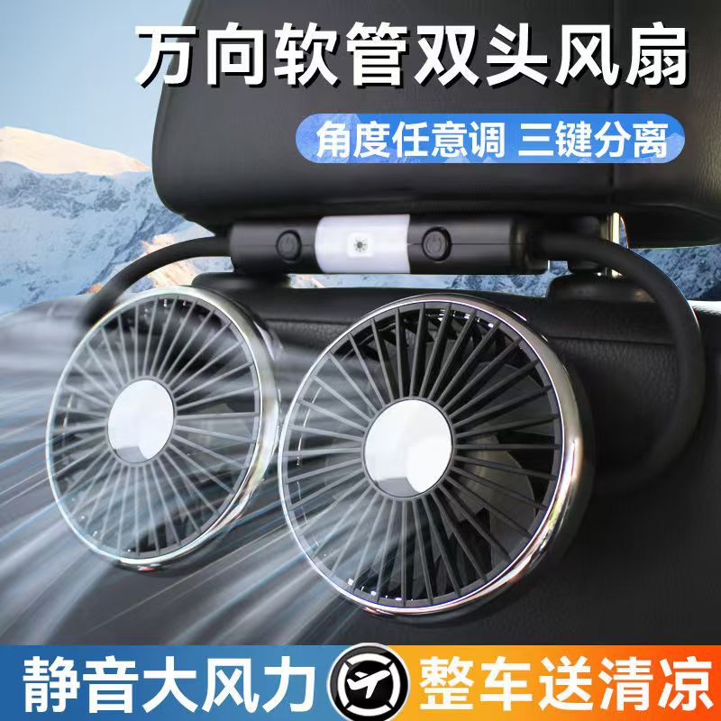 车载电风扇汽车后排座椅专用静音大风力双头usb小风扇充电循环