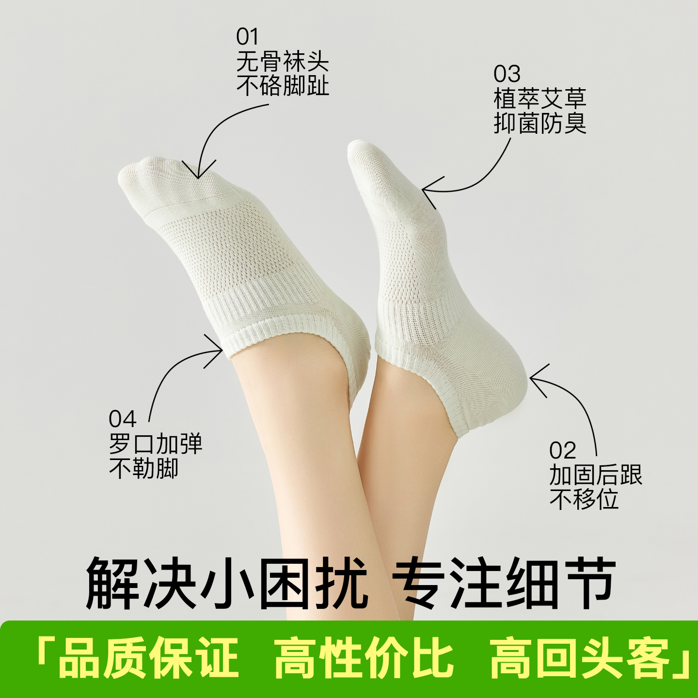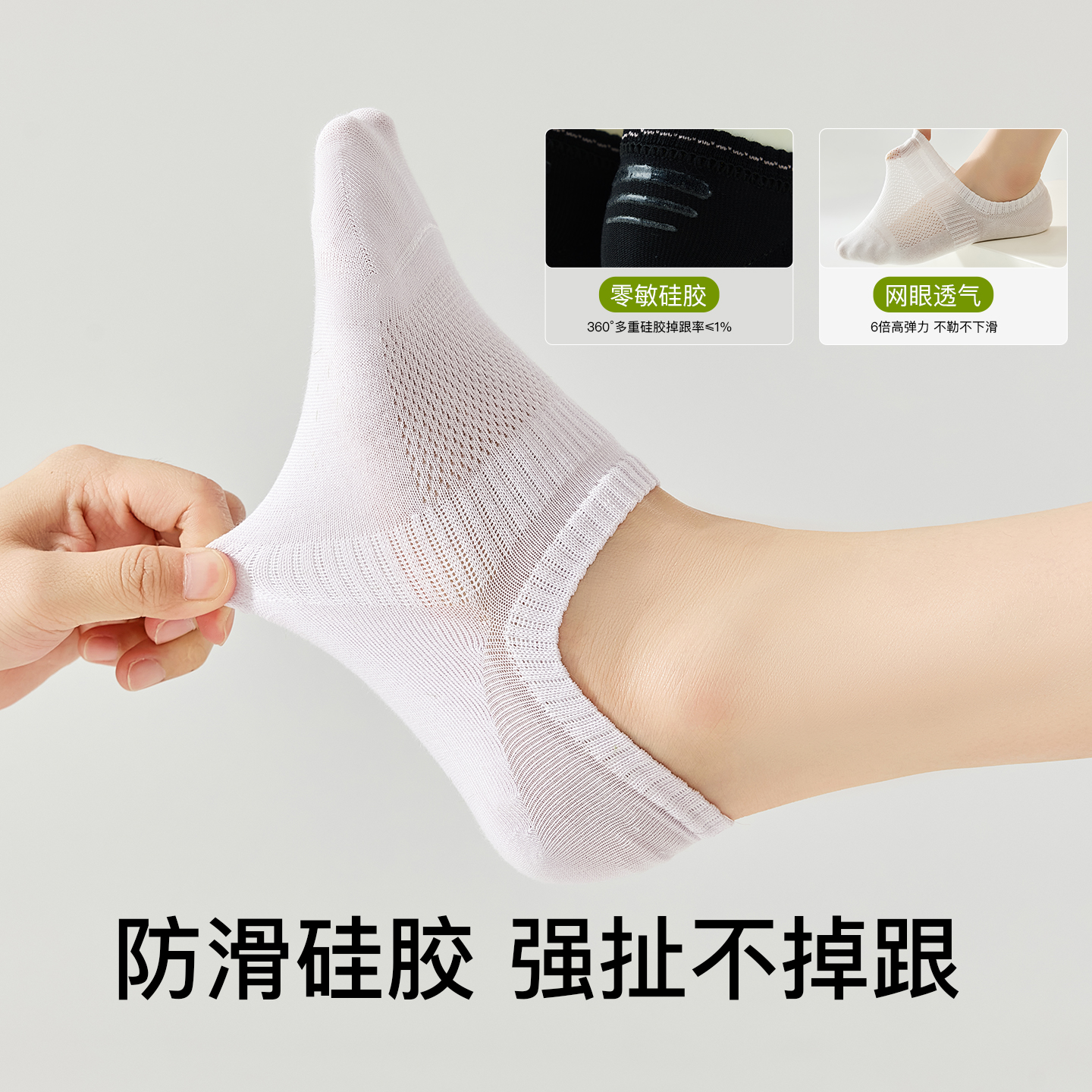 袜子女夏薄款 船袜防滑不掉跟纯棉浅口隐形袜白色网眼透气女士短袜