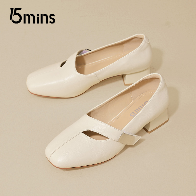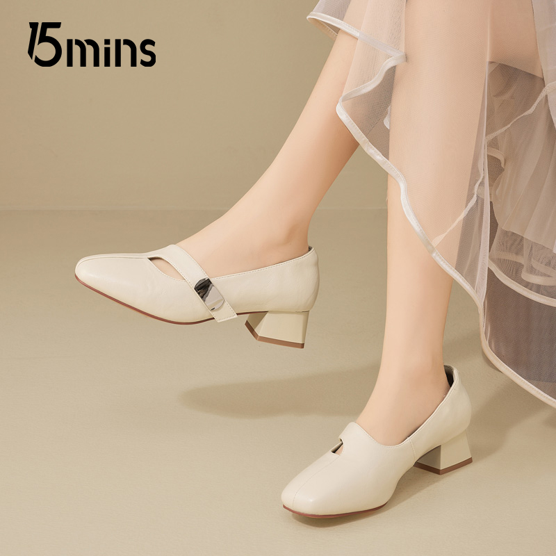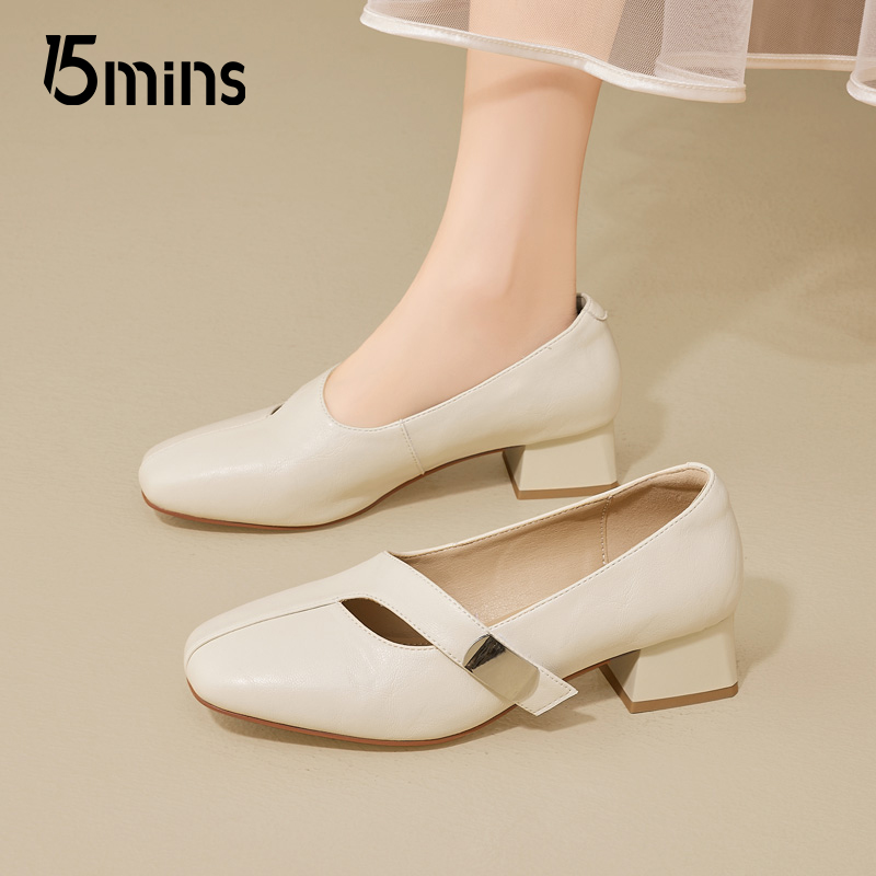 新款 女2025夏季 时装 一字带小皮鞋 15mins法式 粗跟女鞋 方头浅口单鞋