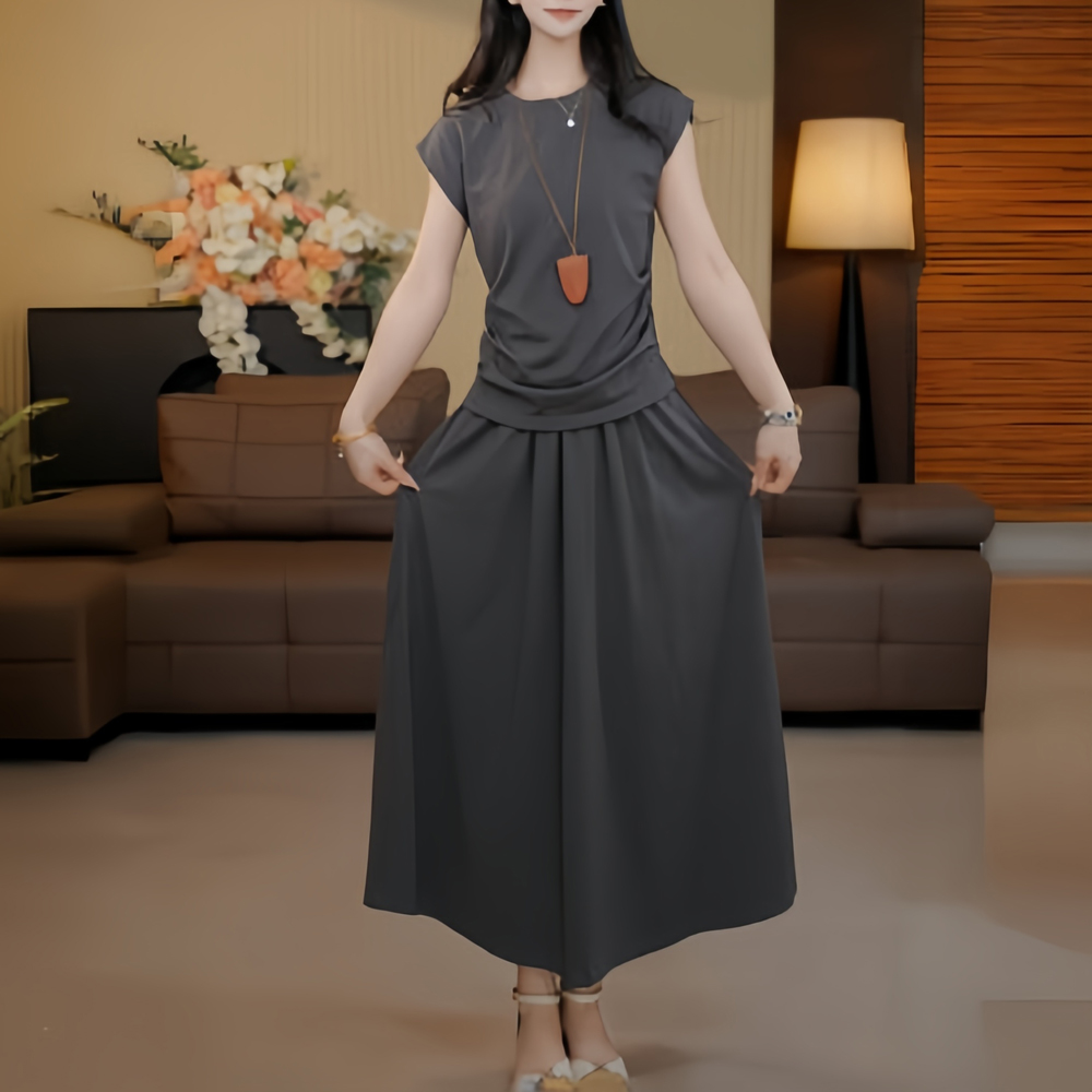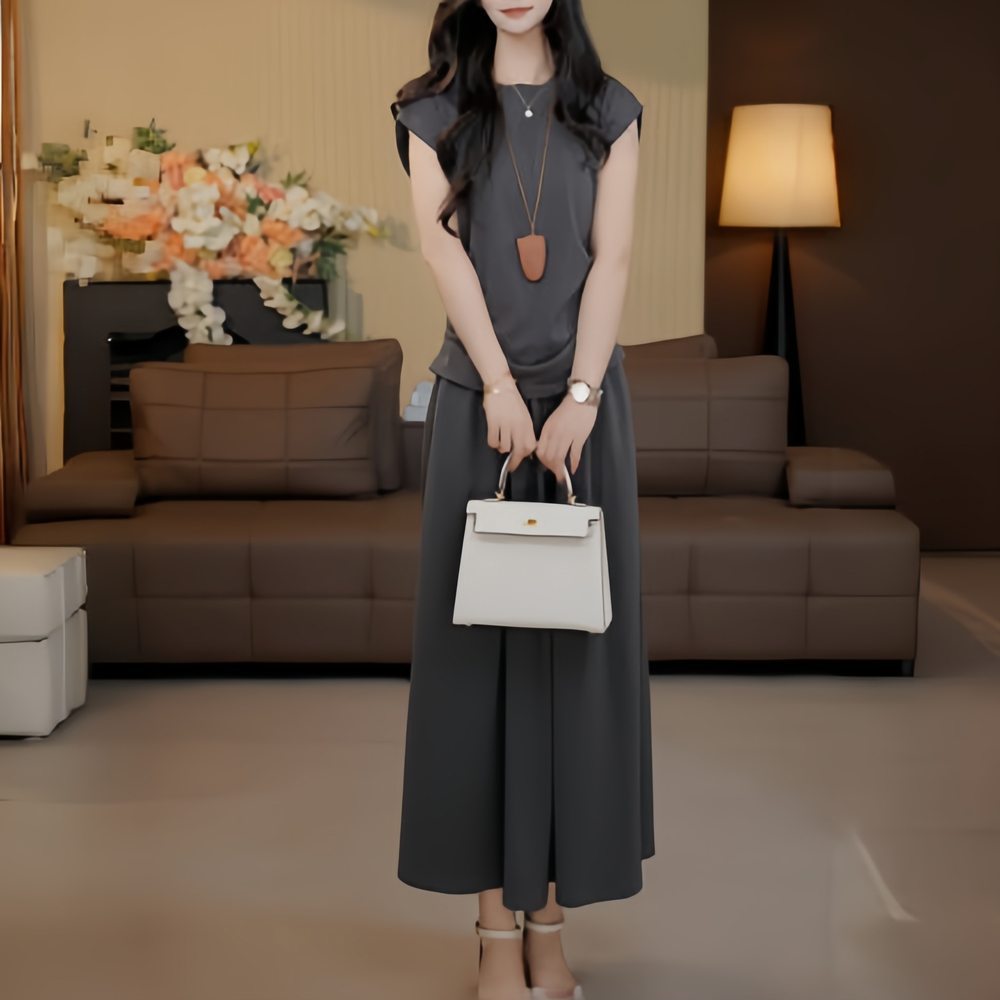 上衣半身裙休闲两件套装 2025夏季 气质遮肚子显瘦飞飞袖 时尚 女 新款
