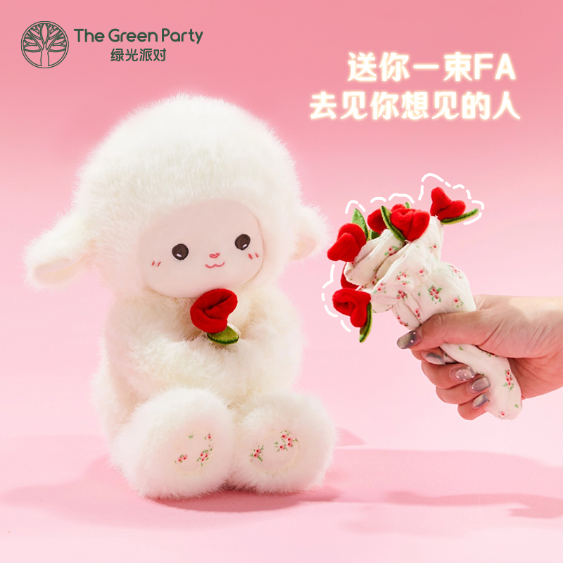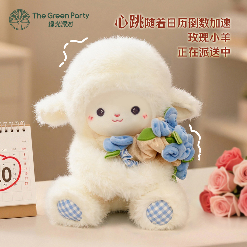 绿光派对玫瑰小羊玩偶六一儿童节礼物公仔女送男朋友花朵可爱娃娃