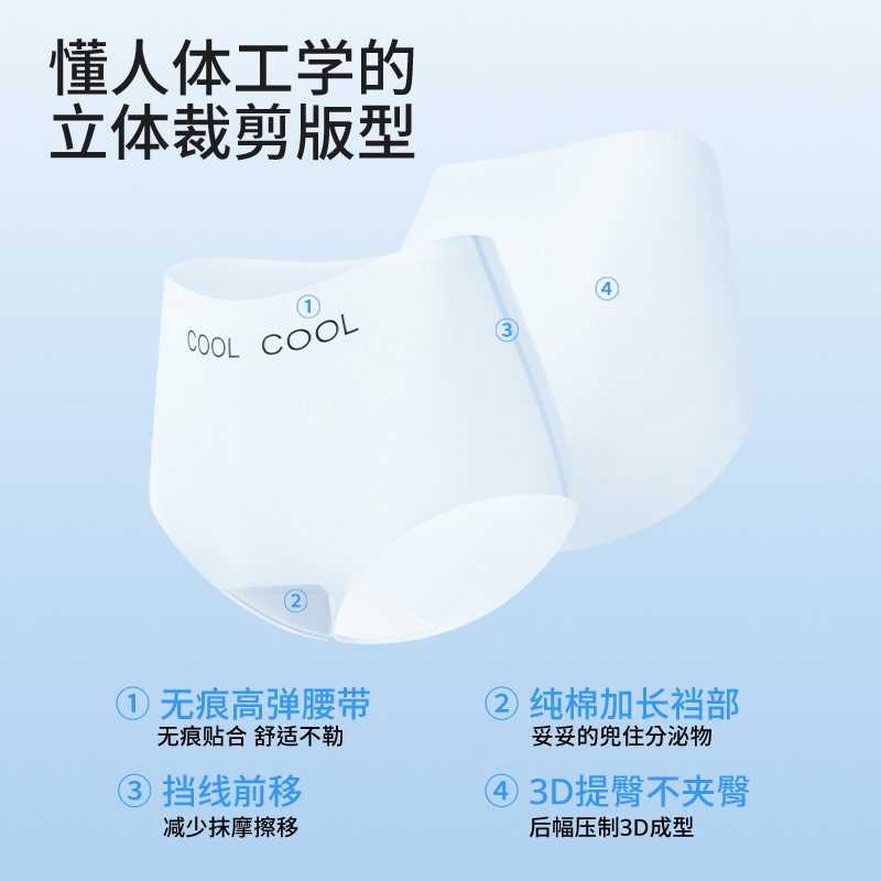 大码 无痕透气亲肤薄真丝莫代尔三角裤 女 蕉内银皮500E女士内裤 3件